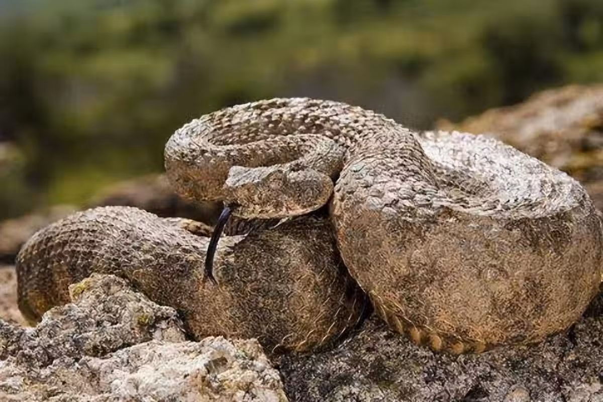銅頭蝮:是美國殺人魔蛇。美國一半以上的蛇咬傷人事件,都來自它。體長90厘米、體重1公斤,頭部呈三角形。毒性雖然只有西部菱斑響尾蛇的一半,但是排毒液量很大,一旦被它咬,必死無疑。性情粗暴、行動敏捷、毒性猛烈、善於偽裝。是伏擊型的獵食高手,它們會找尋一個有利的位置,等待適當的獵物自投羅網,毫不猶豫地攻擊,毫不留情地噬咬對方。即使被砍頭的銅頭蝮也還會動,而且蛇頭還會跳起來狂咬!