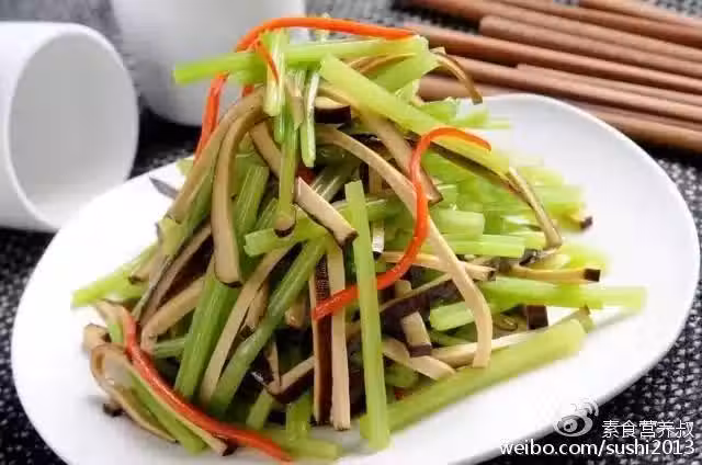 1.將芹菜、豆乾切成條狀,分別焯水;焯水時放入一滴油、一點鹽;芹菜要保持爽脆,不要焯水時間過長。