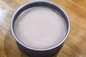 烤盤中倒入室溫的水(約30度),將蛋糕模放入烤盤中,水深大約2-3厘米高。