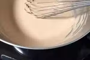 三種材料一定是要完全融合攪打至非常順滑的狀態;