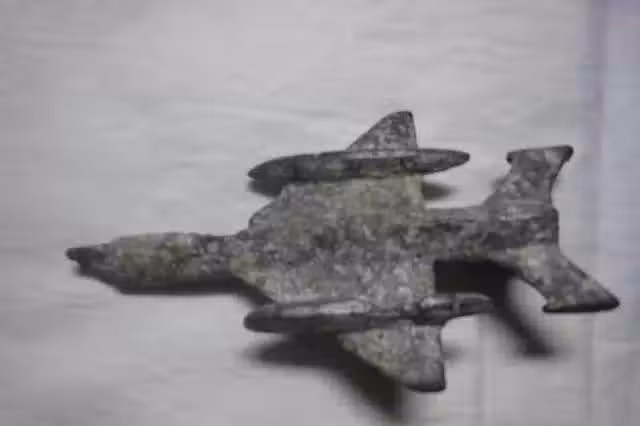 南美的一個國家出土了一個用金屬鑄造的古代飛機模型。據科學家們分析,這架飛機的模型不但設計精巧,而且具有飛行性能出土的類似美國B52轟炸機模型