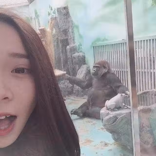 妹子在動物園跟猩猩拍照,回家看照片才發現不對勁