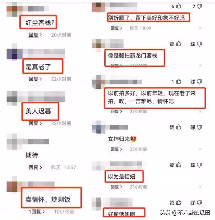而且張敏的狀態也是一言難盡,鏡頭里的她皺紋盡顯、蘋果肌明顯下垂。