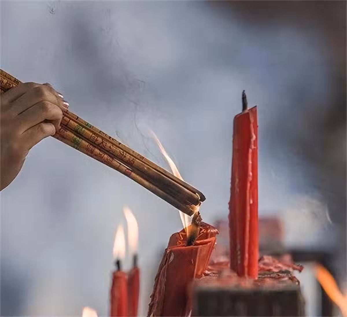 點燃這三根香即意味著對慾念的摒棄與心靈上的解脫。