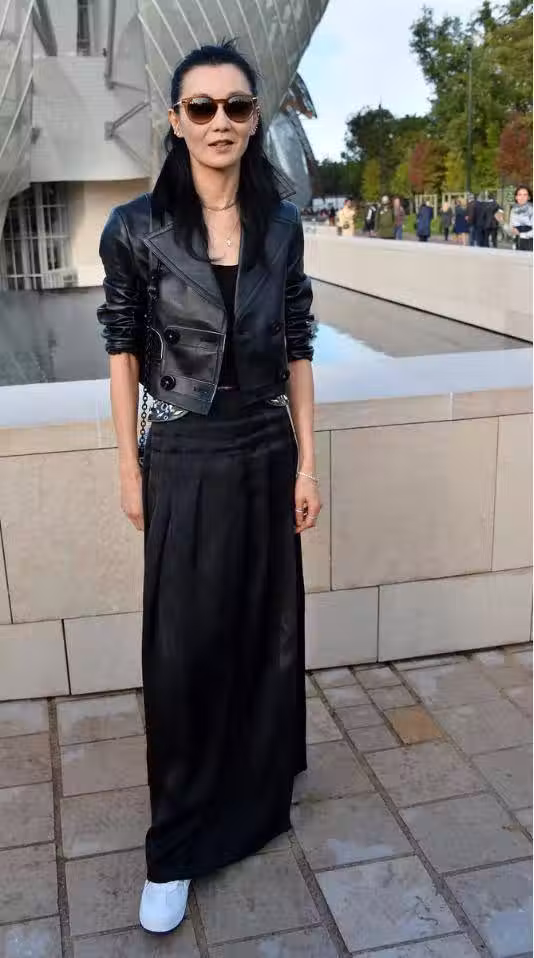張曼玉在國外真夠颯!穿黑色皮衣配開叉半身裙,氣質太有國際范