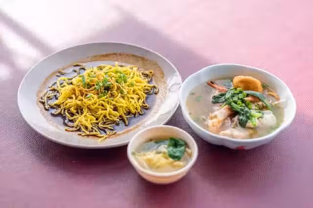 彈弓面是當地特色小吃,面彈彈的配上一大碗海鮮,價格不足十元,更有當地特色的皮蛋餃,餡料用皮蛋和蝦肉做成,美味無比。