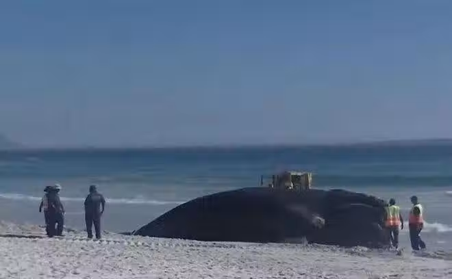 然而,在國外的一個沙灘上,一名散步的男子發現了一個龐然大物擱淺在沙灘上,在遠處看,還以為是一隻倒扣著的小船,走近一看才發現,原來是一隻巨大的鯨魚,男子立即撥打動物救援組織,希望能夠拯救鯨魚。
