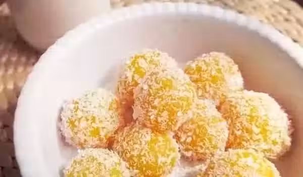 2、南瓜糊、糯米粉、白糖攪勻揉成麵糰,再滾成小圓球(稍微軟一些整出來很糯)。