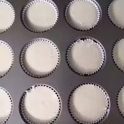 5、把混合好的蛋糕糊倒進裝了紙杯的模具裡裡九分滿,沒有模具直接用紙杯