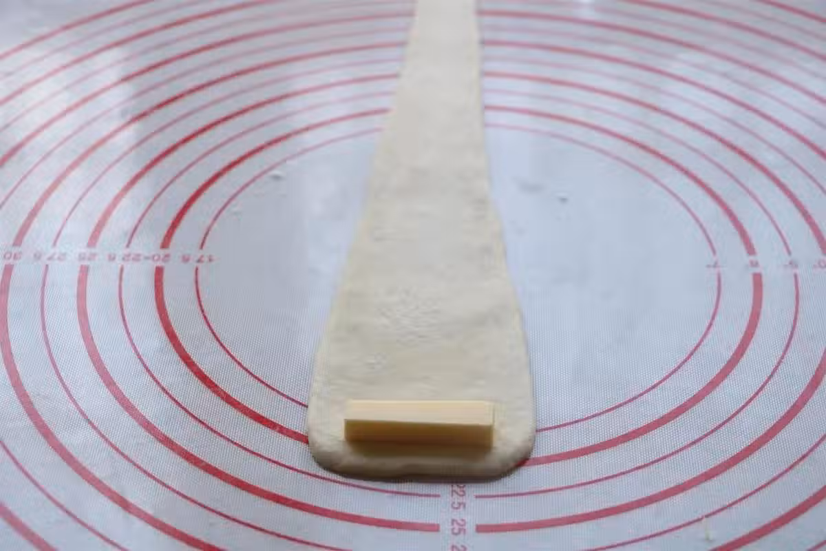 8、一邊抻長一邊捲起來,接口收在底部,像這樣就可以了。