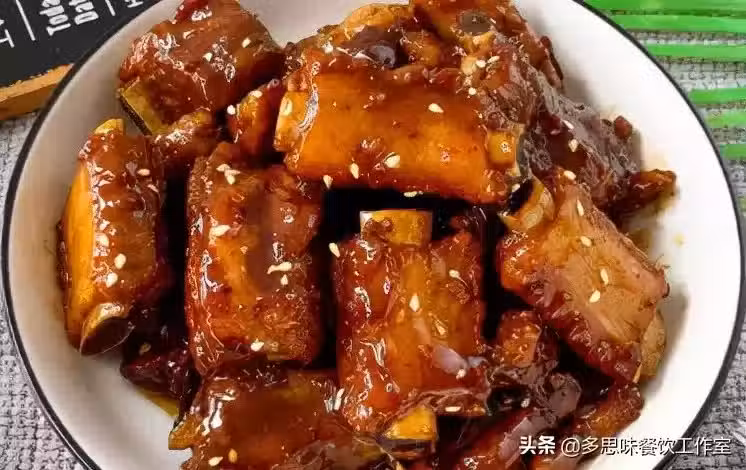 3清水沒過排骨醋生抽紅燒醬油蓋上蓋子大火煮沸轉中小火慢燉30分鐘後,再大火收汁即可,出鍋前可以撒上少許白芝麻裝飾