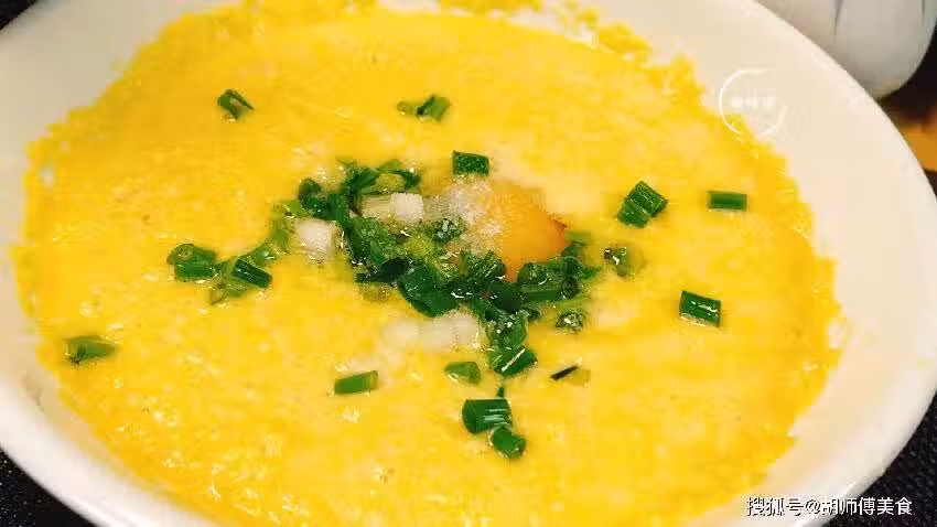 第二步:將玉米碎、雞蛋、蔥花、澱粉、食鹽全部放入到碗中攪拌均勻即可備用。食鹽一定不要放多了,1根玉米放1-2克食鹽即可。