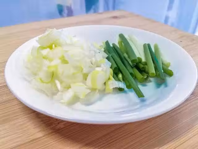 2.小蔥切段 大蔥切末 備用。