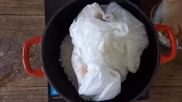 4.碼入包好的雞,盡量讓雞不要跟鍋的四壁接觸,如果有碰到的地方,在雞和鍋壁之間墊上粗鹽。