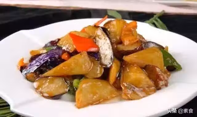 2.起鍋熱油,將土豆和茄子煎至金黃色。