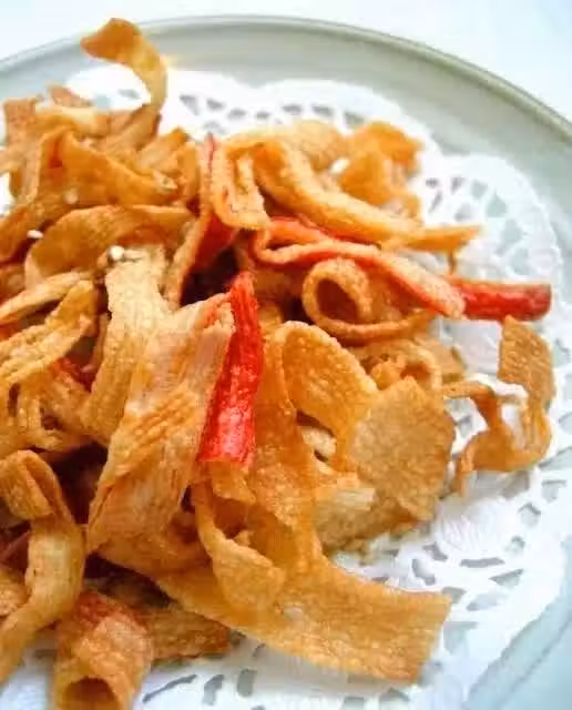 1、首先,將蟹柳解凍拆開包裝在烈日下晾乾約一小時以增加脆度。