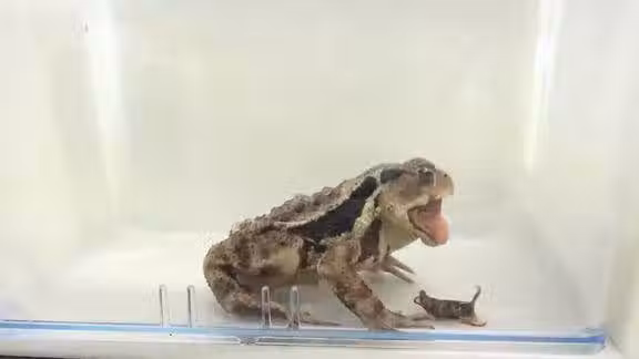 蛤蟆一口吞下打屁蟲,生化炸彈瞬間在體內爆開,鏡頭記錄尷尬瞬間