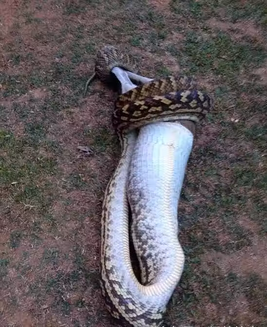 有攝影師在澳大利亞昆士蘭州的北部小鎮庫蘭達抓拍到了蟒蛇捕獵沙袋鼠的畫面。