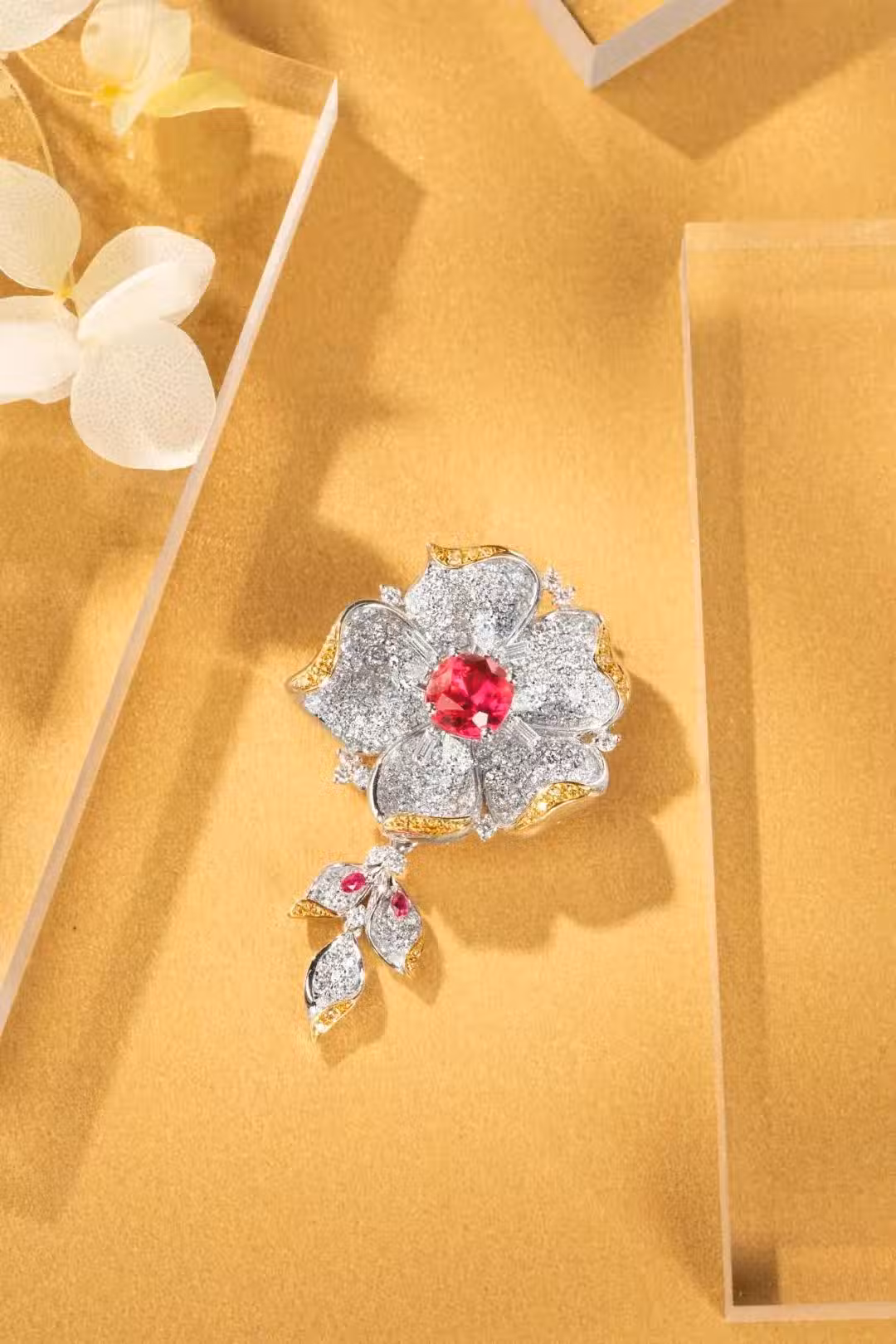 尖晶石是鎂鋁氧化物組成的礦物,因為含有鉻、鐵、鋅、錳等微量元素而帶有不同的色調,其形成條件與剛玉相似,常與紅、藍寶石相伴開採。盛產紅、藍寶石的緬甸也是尖晶石的福地,出產世界上最優質的尖晶石。