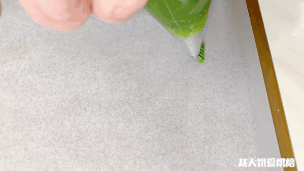 9、剩下的一份麵糊加入可可粉2克+咖啡粉3克,裝入裱花袋,擠出長條形