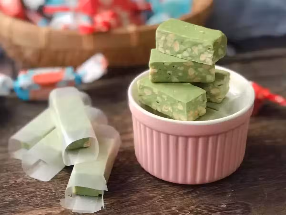 這期抹茶味牛軋糖我使用了棉花糖來做,做起來十分簡單。