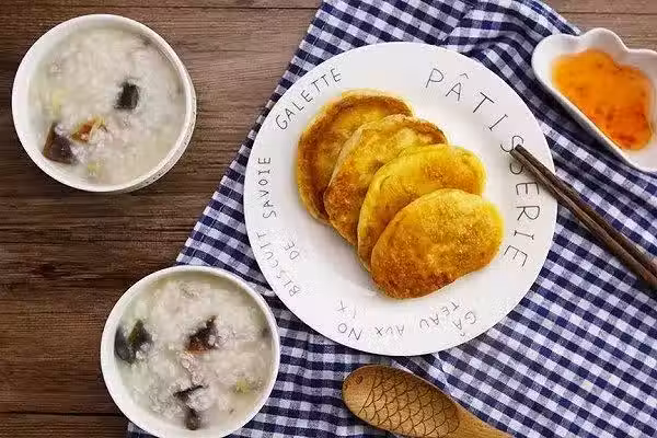 肉末30g.米飯1碗.雞蛋1個.皮蛋1隻、饅頭少許.薑絲少許、鹽少許