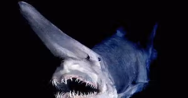 這頭鯊魚看起來像是來自地獄的野獸。它們在深海中捕獵,用他們恐怖的獠牙撕扯並束縛獵物。恐怖的長相,可能獵物看到它時就已經被嚇的半死了吧。