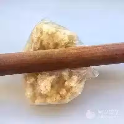 5、烤好的糯米放入保鮮袋中,用擀麵杖擀壓成顆粒狀態。