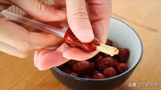 6.將紅棗洗凈,用吸管把紅棗核取出來。