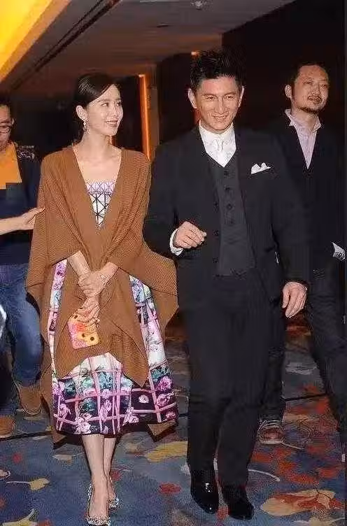 吳奇隆攜嬌妻亮相!穿印花裙配駝色披肩高貴大方,看不出差17歲