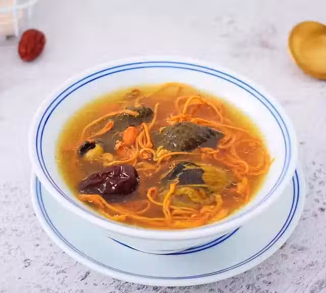 煲至大約1小時後加入蟲草花,蓋上鍋蓋繼續燉煮