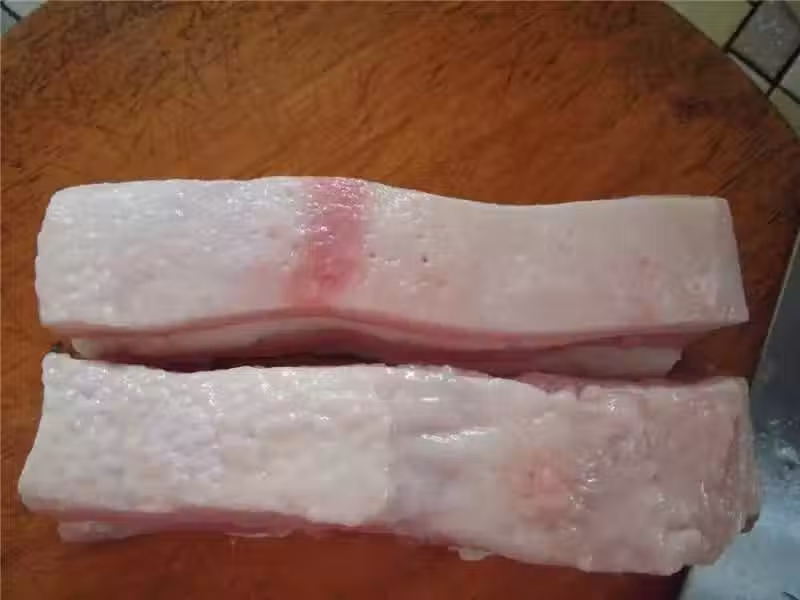 2)熱鍋,下油爆香蒜茸,加入花肉片拌至肉兩面呈白色。
