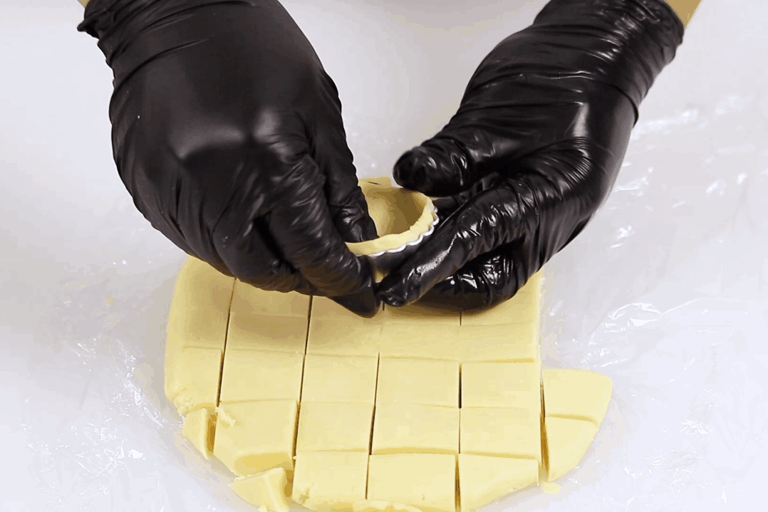 撻皮底部紮上小洞,放上紅豆(此處紅豆僅用於撻殼定型,可用烘烤石等替代)。