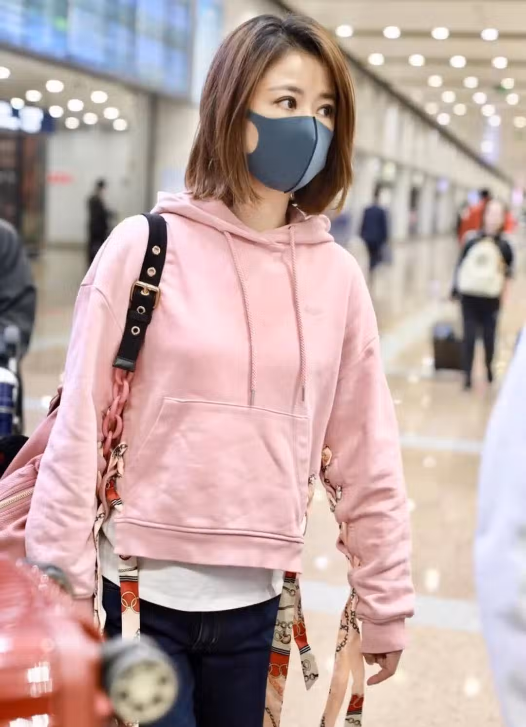 林心如獨自走機場!穿粉色衛衣配9分褲好洋氣,看不出有47歲