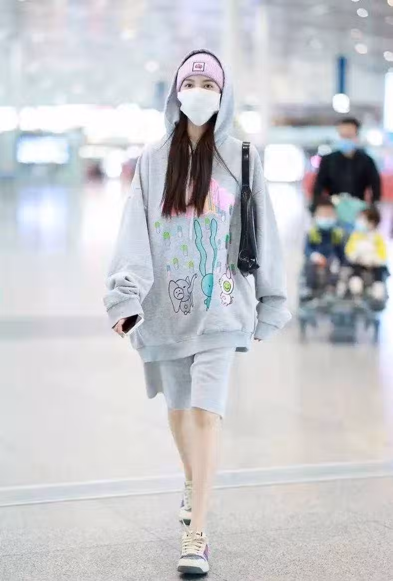 林心如獨自走機場!穿粉色衛衣配9分褲好洋氣,看不出有47歲