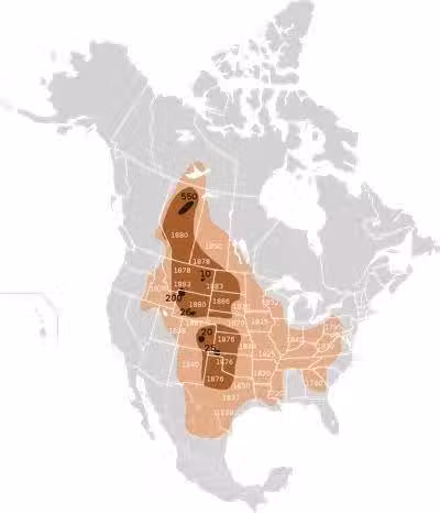 1830年4000萬,1870年550萬,1889年美國境內只有541頭