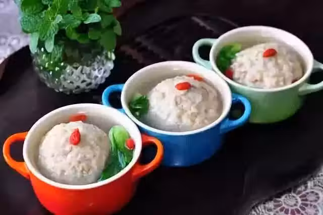 9.蒸好的成品,倒出裡面的湯汁,和少許水澱粉重新下鍋內加熱至濃稠,淋在肉丸表面即可。