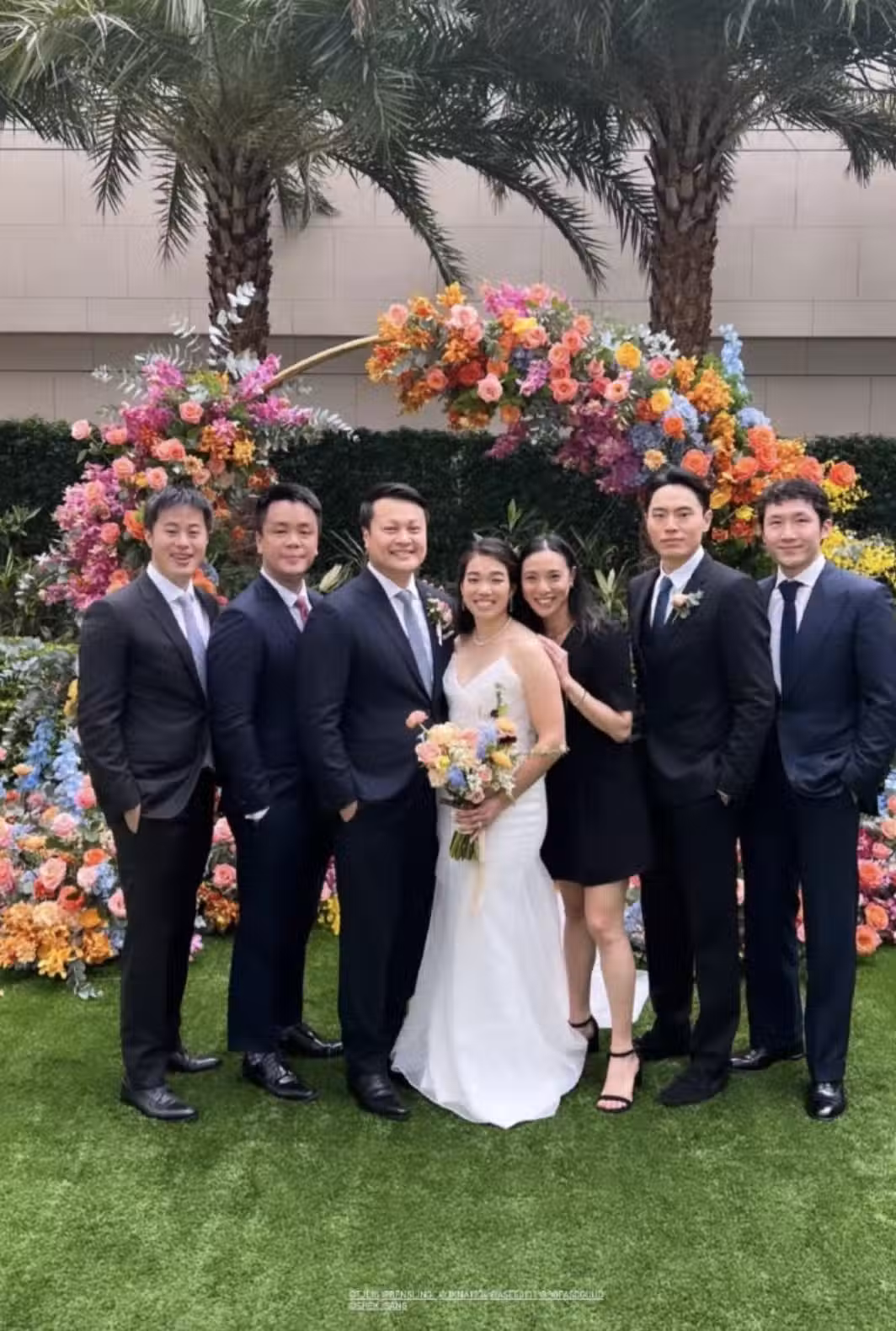香港地產商大戶,亦是有頭有臉的豪門,郭得勝家族在兔年農歷新年期間迎來一樁大喜事——郭得勝的孫子郭基浩完成了人生大事,正式迎娶女友為妻,在專屬場合進行簽字儀式,並舉辦盛大的婚禮,真是好不熱鬧。從被公開的照片來看,婚禮的排場並不小,該有的儀式都不少,很符合豪門娶嫁的作風——有龐大的伴郎、伴娘團,有盛大的儀式,還有各種接親環節,還設有派對,現場由樂團進行伴奏,供所有賓客玩樂,總之高調而隆重。