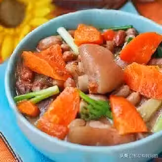 原材料:豬手(豬蹄)300克,花生米50克、枸杞50克,生薑5克,紅蘿蔔20克,蔥少許。
