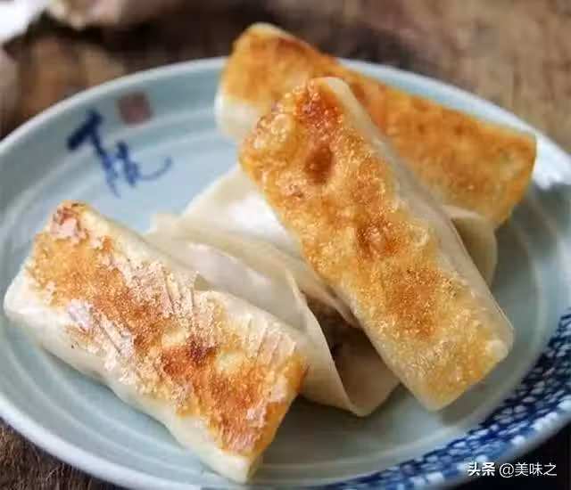 7、平底鍋燒熱,在鍋底抹一層油,將鍋貼擺入,蓋上鍋蓋小火煎2-3分鐘。