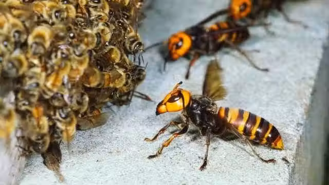 對於西方養殖的蜜蜂來說,5~7隻大虎頭蜂就可以攻陷一個蜂巢,一隻大虎頭蜂每分鐘幾乎可以咬下40隻蜜蜂的頭部,這簡直就是它們的噩夢。