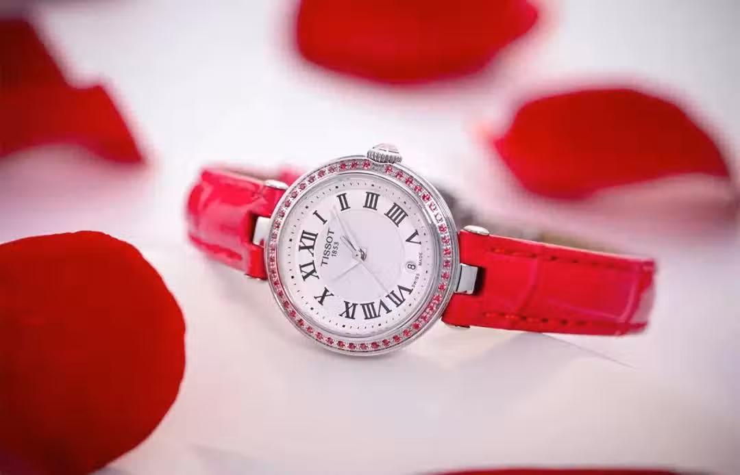 品牌為這款表配備的是高貴優雅的鱷魚紋粒面牛皮錶帶,它的色彩與表圈上的紅色寶石巧妙呼應,使表款整體風格保持一致。