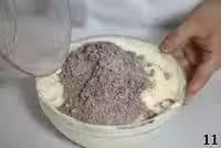 12.用橡皮刮刀繼續以翻拌的形式,快速地翻拌面 糊,直到形成均勻的蛋糕麵糊