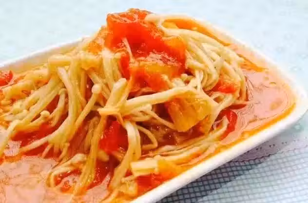 特色:金針菇很鮮美,用來燒湯涼拌都好吃,搭配番茄一起炒,味道酸甜鮮香。