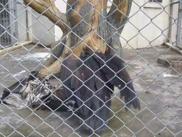 禿鷲金雕「誤放同一籠中」,金雕被撲倒「瘋狂撕咬」,趴在地上成這模樣:雕兄太慘了!