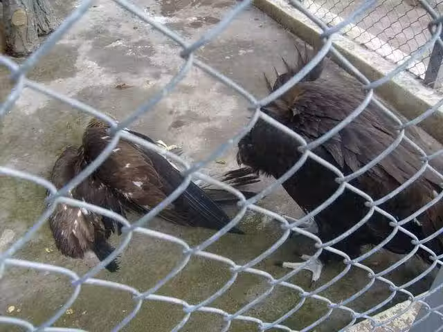 禿鷲金雕「誤放同一籠中」,金雕被撲倒「瘋狂撕咬」,趴在地上成這模樣:雕兄太慘了!