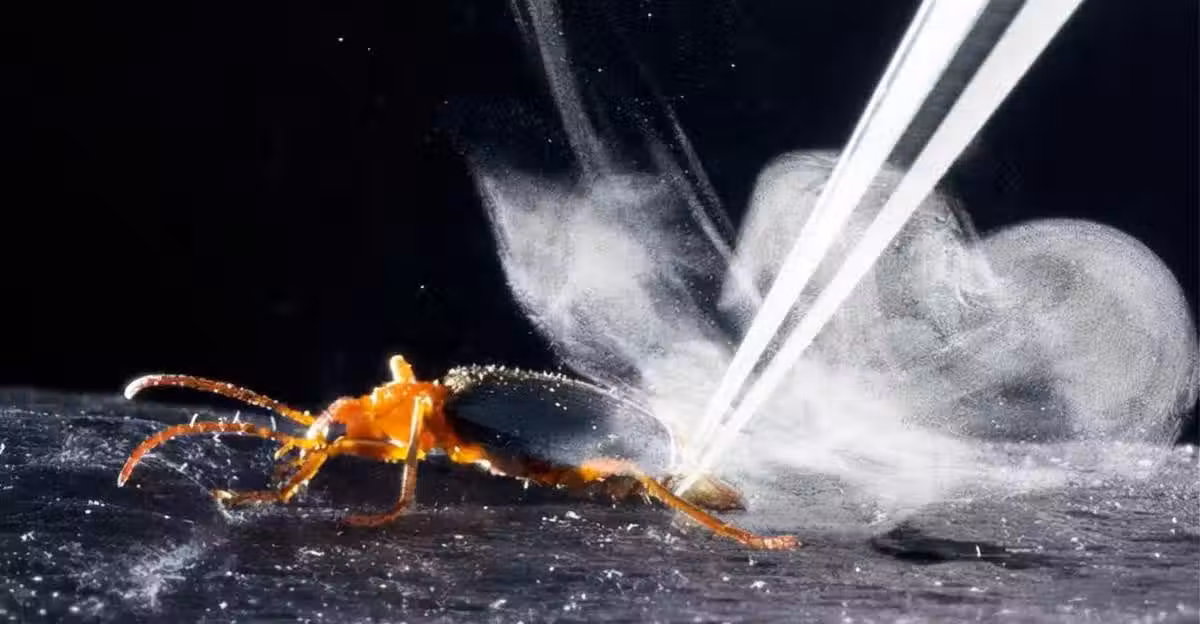 當有其他生物將射炮步甲吞進嘴裡的時候,就會觸發這種防禦機制。
