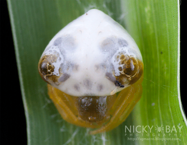 鳥糞蜘蛛,顧名思義,它把自己裝扮成一坨鳥糞,內部還有汁水流動的效果,總結起來,就一句話:讓天敵覺得它惡心得沒法吃。