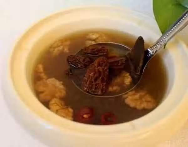 1、先將靈芝切成片泡發一會沖洗乾淨,菌菇洗去泥沙洗淨,核桃仁快速飛水出鍋瀝幹水份,紅棗洗淨,待用。