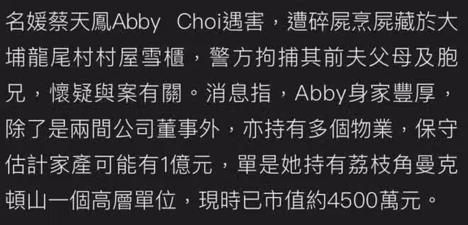 兇殺案新進展!香港名媛遭烹煮碎屍,身價過億,疑被前夫奪財所殺